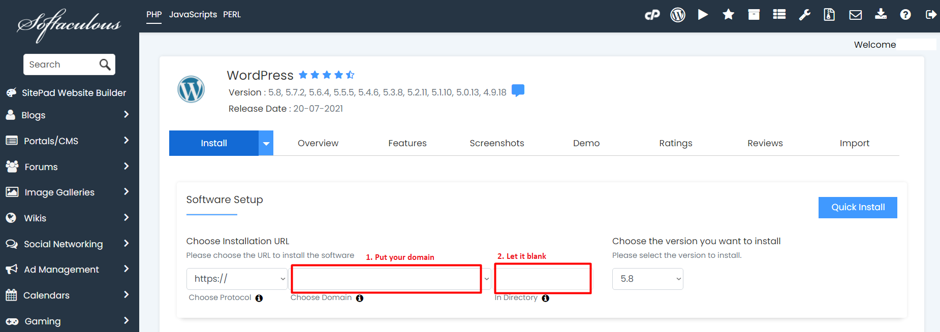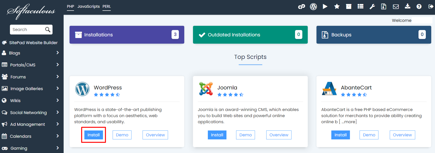 1. log in to your cPanel account and find the Softaculous Apps Installer  icon under the Software section
